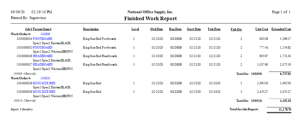 Manufacturing - Finished-Work Reports