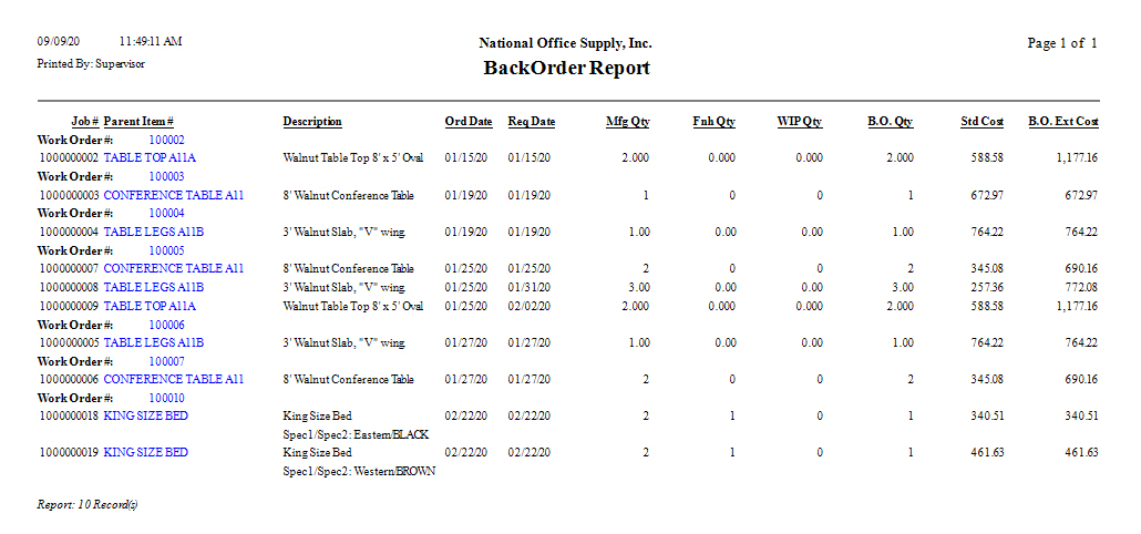 Manufacturing - Work Order Reports