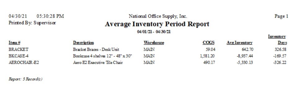 The Average Inventory Period Report provides information on the average number of days in a specified period that goods are held in inventory before they are sold. It also shows how inventory changes over time. This report is very useful in determining the sales trends to reduce inventory carrying costs and in monitoring the amount of time goods sit in inventory and remain unsold. You can opt to include in the report the shipments that are yet to be invoiced. You can also opt to include the archived inventory items. This report can be generated only for active items, only for inactive items, or all inventory items regardless of their status. You can further filter the report to include only the items with sales activities, only the items with no sales activities or all inventory items regardless of whether these were sold or not within the specified period.